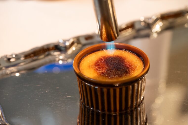 おすすめは、注文を受けてから店内厨房で表面をパリッと焼き上げてくれる『クレームブリュレ』。