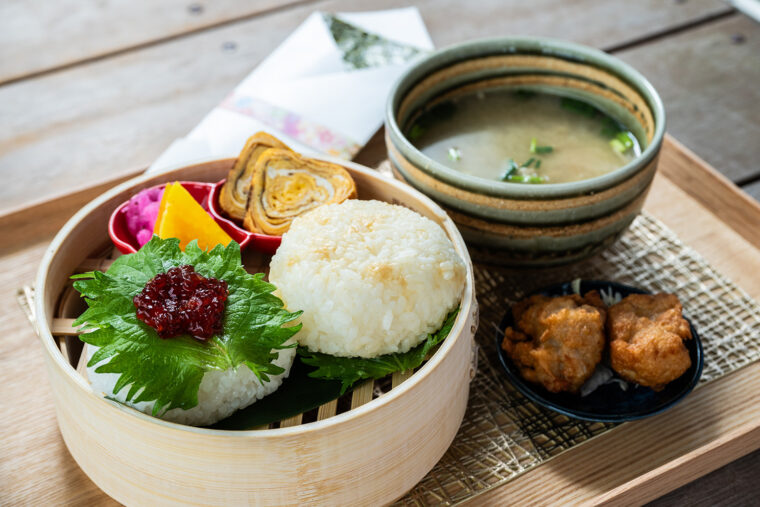 契約農家から直接仕入れる県産米を用いた1 個140グラム超えのおむすびが自慢です。