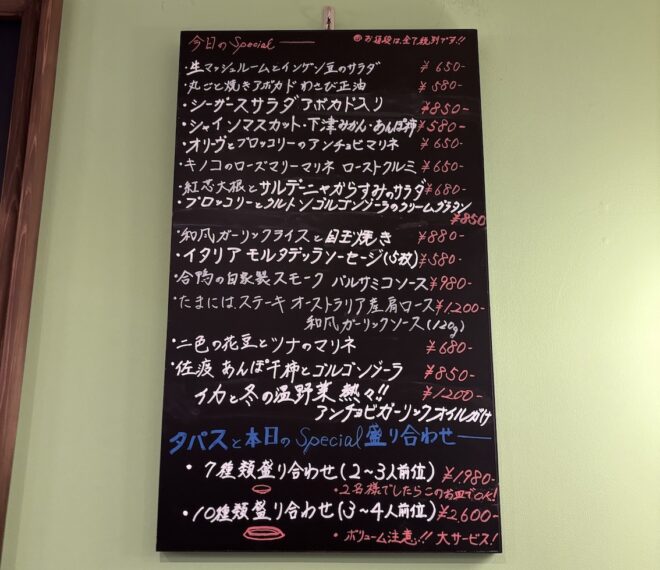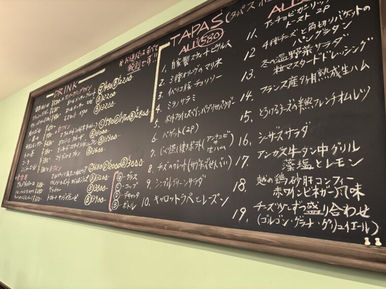 壁の黒板にはメニュー名がびっしりと書かれています。