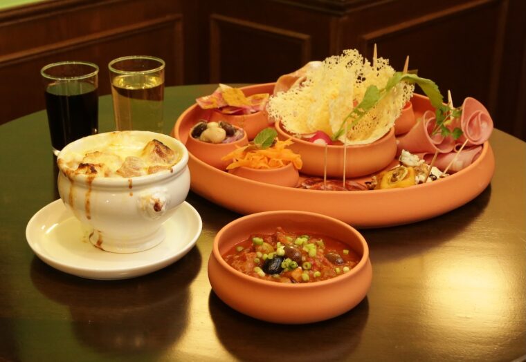 タパスの他にも、『4種チーズと角切りバゲットのパングラタン』(858円)、『和牛すじとオリーヴの辛いパプリカ煮込み』(1,320円)など、どれもお酒が進むメニュー揃いです。