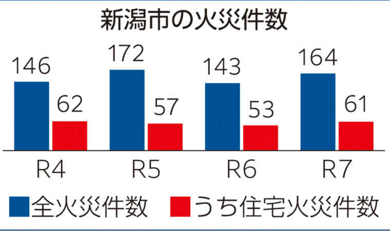 新潟市の火災件数は、前年より21件増加し、164件でした。