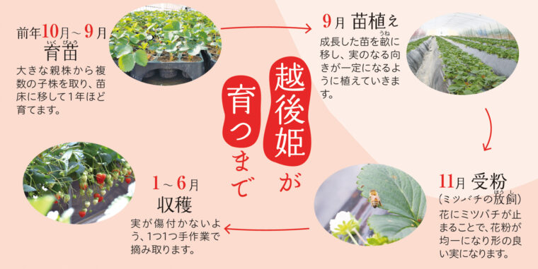 今、出荷時季を迎えている「越後姫」は、6年もの歳月をかけて開発された新潟県オリジナルの品種です。