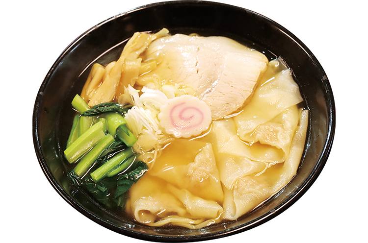 昔ながらのあっさりとした味のスープに、店内で作っているワンタンと自家製麺が入っています。