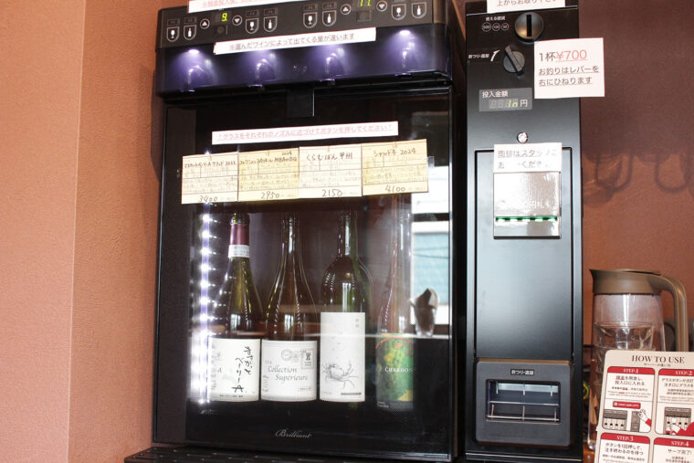 4種類のワインをセルフで楽しめるワインサーバー(1杯700円)が設置され、0次会の場として利用する人も多数。