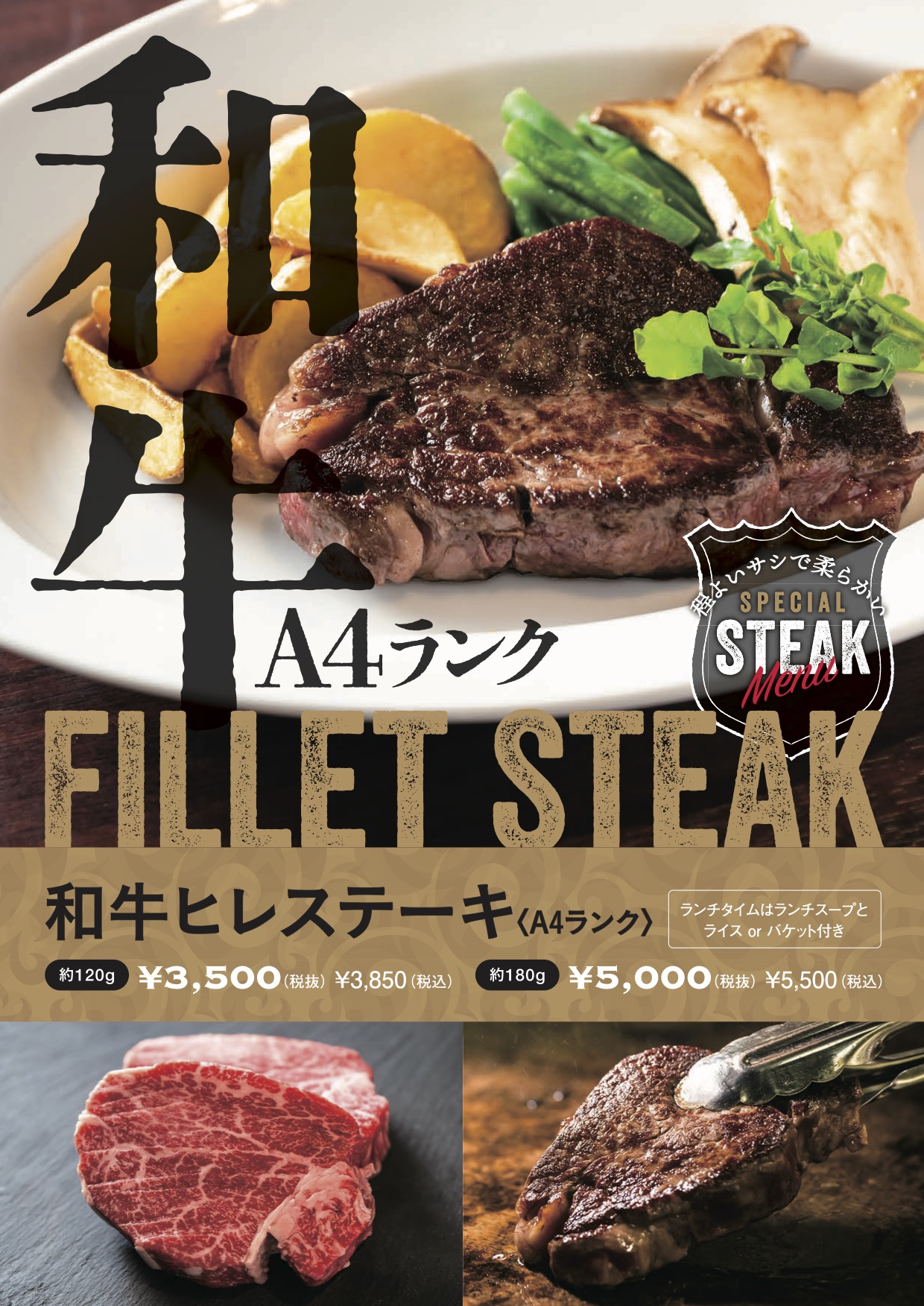 ステーキメニューに、とろけるような柔らかさと上品な旨みが極まった『和牛ヒレステーキ〈A4ランク〉』が堂々仲間入り。