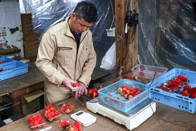 出荷時はパックに詰めますが、その際、見た目が綺麗になるよう実の向きを揃えて並べる配慮も。そこには、佐藤さんの「皆さんにいっぱい食べてほしい」という愛情がたっぷりと込められています。