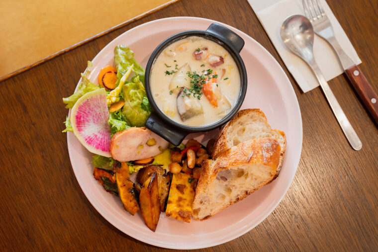 り豊かな惣菜を具だくさんのスープとともに味わえます。