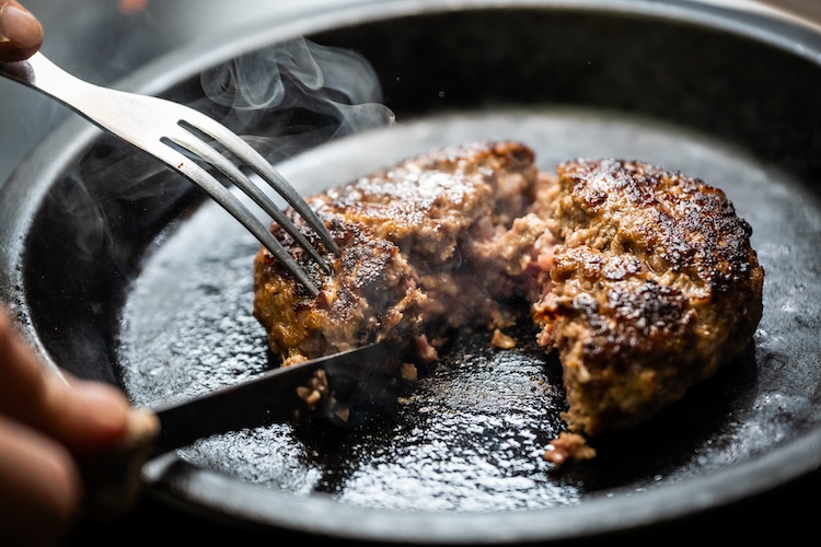 つなぎ(卵、牛乳、パン粉)を使わず、選び抜かれた良質な牛肉を使用しているため、口に運んだ瞬間に、肉を食べているという強い実感を味わえます。