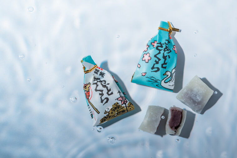 『こめいとさくら』は、白玉粉の求肥でこしあんとシソの葉を包んだ和菓子で、やわらかな甘さの中にふわりとシソの風味を感じます。