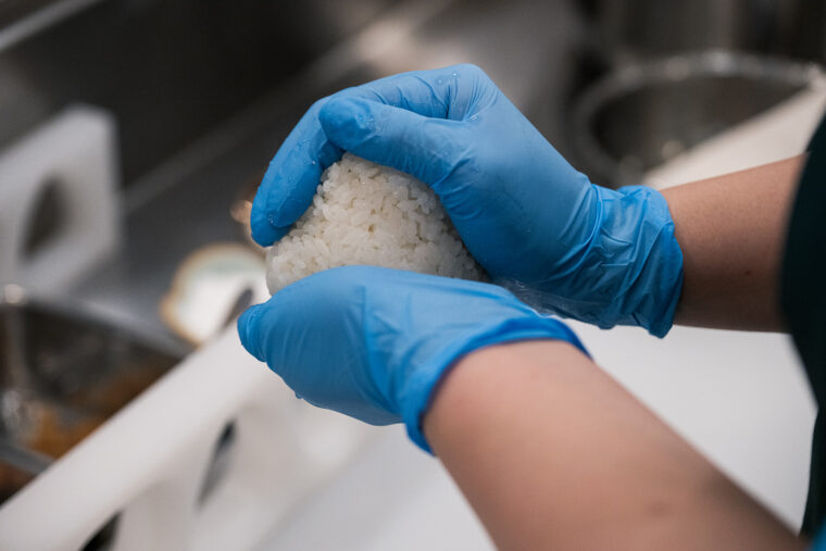 可能な限り佐渡産の食材を用いて、化学調味料を使わずに手作りするおにぎりはおいしくて、安心して食べられると幅広い世代に支持されています。