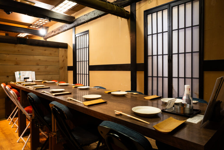 掘りごたつ個室や座敷を備え、人数に応じてレイアウト変更も柔軟。
