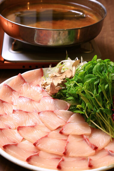削りたての本枯れ節や日高昆布から丁寧に引いた黄金色のダシに、越後もち豚やブリ、牛タン、カニなどの厳選食材をさっとくぐらせて味わう逸品です。