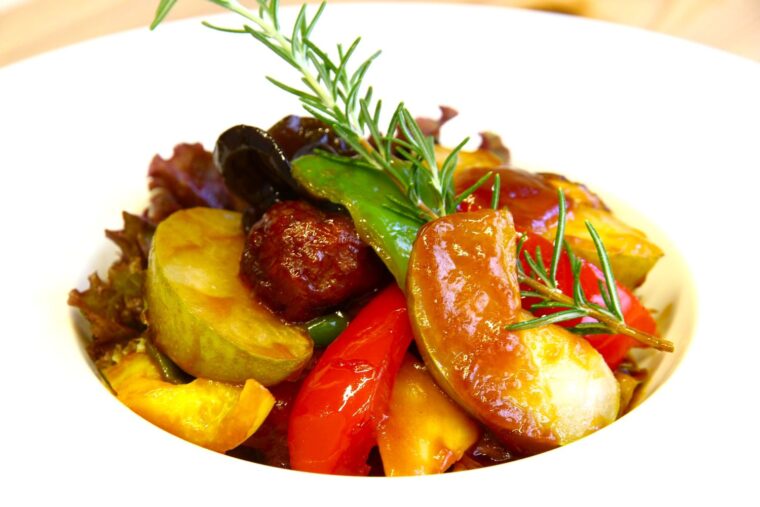 今回提供するのは、新潟県産日本なしを用いて作った自家製和風ドレッシングで味わう、さっぱりとしたサラダ。