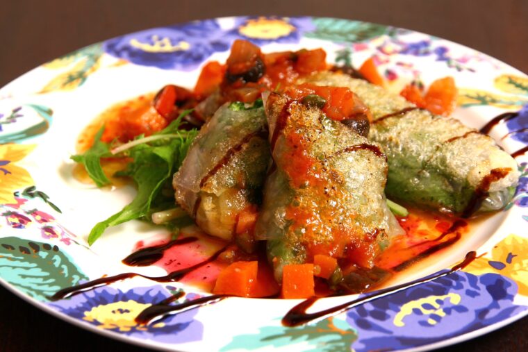 生春巻きはイリィの定番人気メニューだが、焼くことで生春巻きとはひと味違う一品に。香ばしさとモチモチ食感がやみつきになりそう。