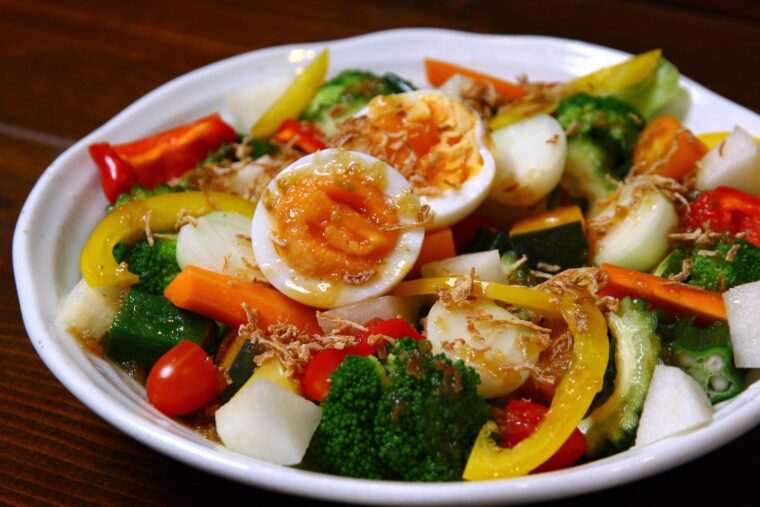 新潟料理と旬の食材 だしや 『県産日本なしドレッシングの生野菜・温野菜・ピクルス野菜のサラダ』(900円)
