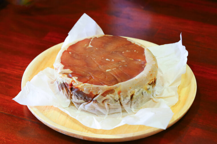 ジャムにした日本なしとクリームチーズを、ライスペーパーで包んで香ばしく焼き上げた。