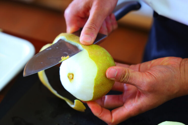 そして熱を加えることで甘みが増した日本なしは、皮まで自然なシャキシャキ感に。