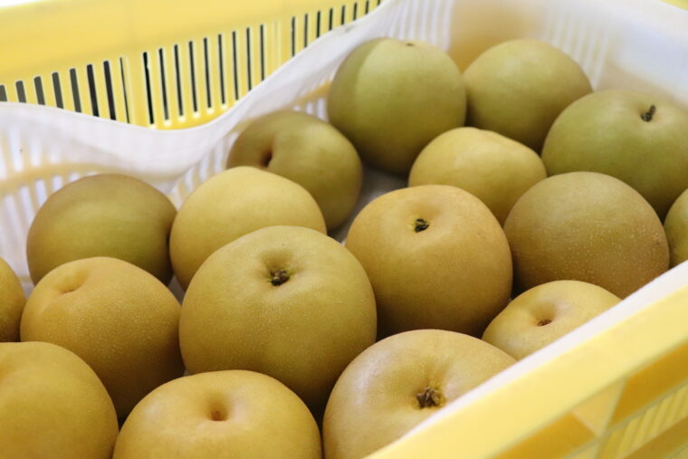 県内では、果肉がやわらかく甘みとジューシーさが特徴の「幸水」や、甘さと酸味のバランスがよい「豊水」をはじめ、新潟生まれの品種「新美月」「新王」、そして1個800グラムにもなる大玉の「新高(にいたか)」ほか多数の品種が栽培されています。