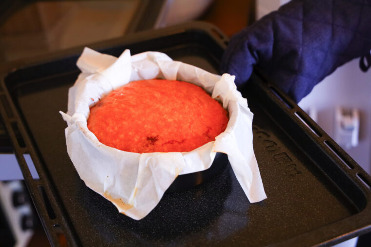 ⑤200℃に予熱したオーブンで④を25分ほど焼く。型を逆さにしてお皿にのせて完成!