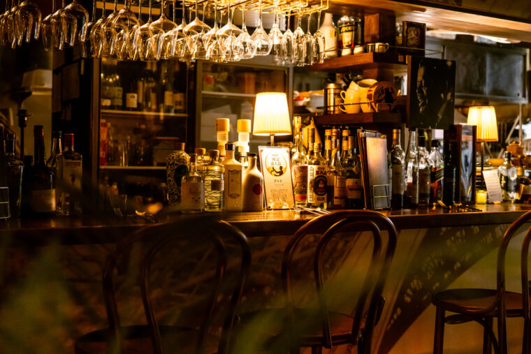 店内のカウンターに並ぶのは、店長・山田碧衣さんが厳選したスウェーデンやイギリスをはじめとする世界各国の希少なジンやワイン。