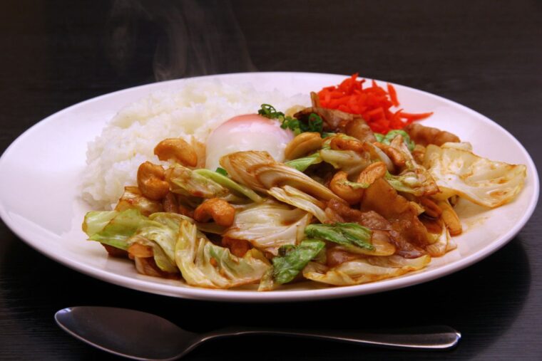 さらに、カシューナッツの甘みと食感、添えられた紅ショウガなどが味のアクセントに。