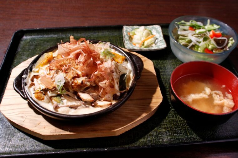 ぜんてい 越後の台所 亀田店 『米粉仕立ての和風ハンバーグドリア定食~踊る鰹節の香り~(サラダ・漬物・味噌汁付)』(1,738円)