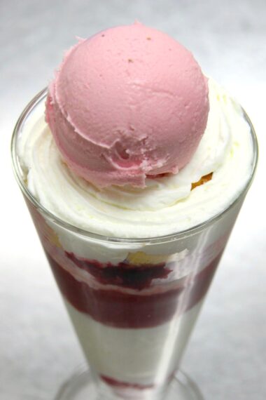 イチゴアイスと生クリーム、そしてお店自慢の新鮮な卵で作られたシフォンシートが口の中で混ざり合い、甘みの三重奏に酔いしれちゃいます!