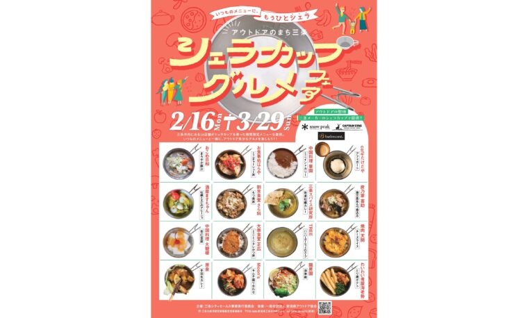 アウトドアのまち・三条市の飲食16店舗が、アウトドアの定番アイテム「シェラカップ」を器に使い期間限定メニューを提供する『シェラカップグルメフェア』を開催します!