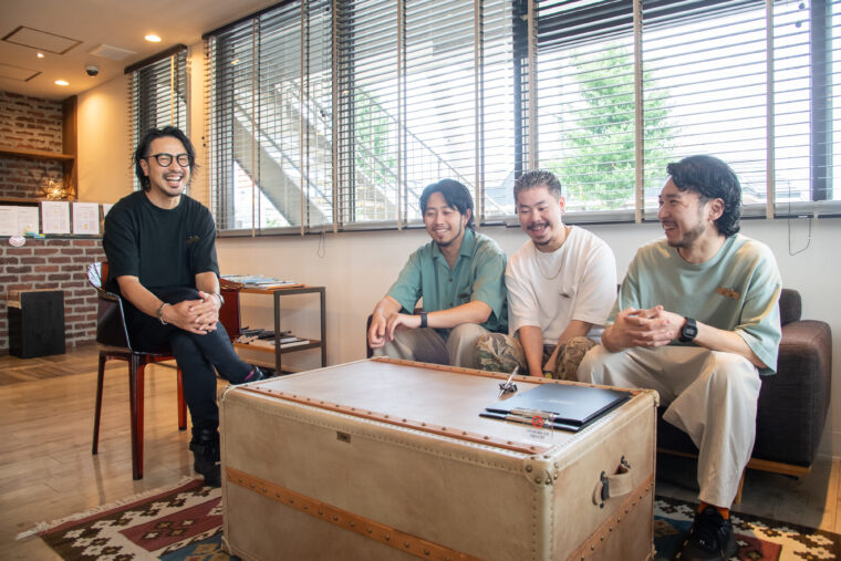 左から吉原茉優さん、松浦弘法さん、吉川 昇吾さん、美容師免許も持つ竹内 怜羅さん。