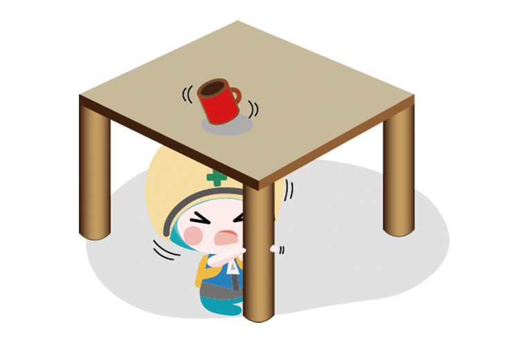 地震が発生したら、まずはその場で身を守る行動を取りましょう。