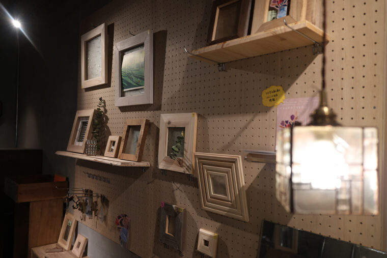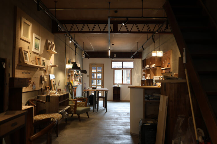 現代に合うようにアップグレードされた古い家具や昭和ガラスのランプシェード、廃材を活用した額縁など、一度役目を終えた古いものに新たな価値をプラスして販売しています。