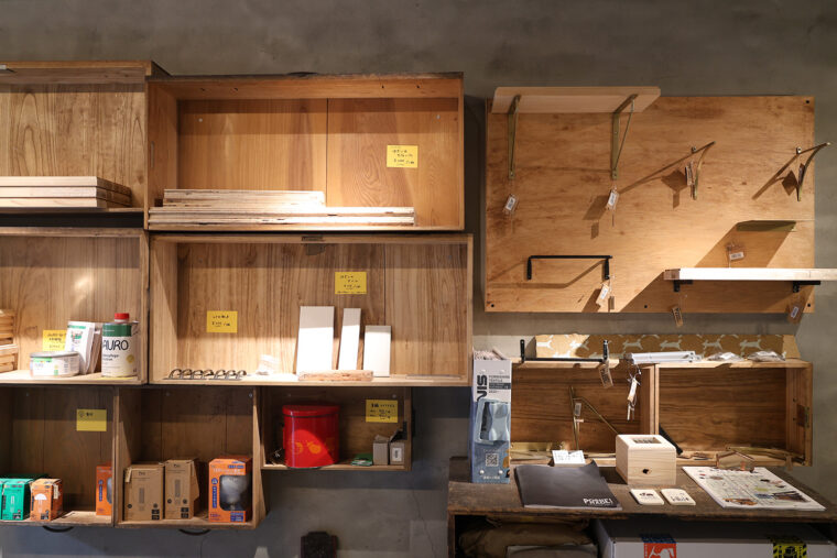 さらに、「小さなホームセンター」をテーマに、DIYに使える棚板やタイル、金具など、建築業ならではの端材も用意。