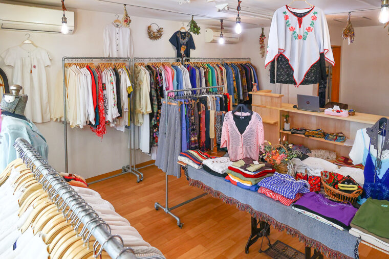 「県内にレディスアイテムを扱うお店が少なかったので、女性もふらっと気軽に入店できる古着店を作りたかったんです」という思いから、10年来の友人である小林さんと坂田さんがオープンさせました。