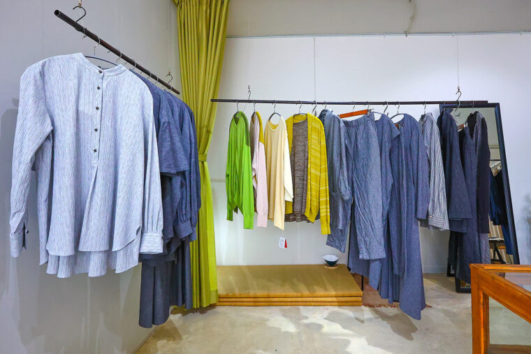旧亀田町の伝統織物・亀田縞をはじめとした新潟の伝統的な素材を用い、日常的でありながら自由なスタイルを提案しています。