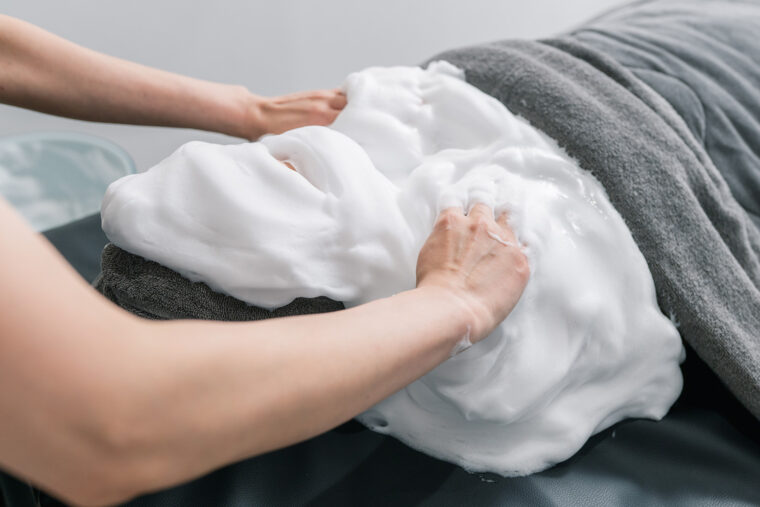 弾力性の高い泡をいかしてリンパもやさしくほぐします。