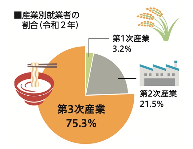 一方、農業などの第1次産業就業者は減少が続き、全国(3.2%)と同じ結果になりました。