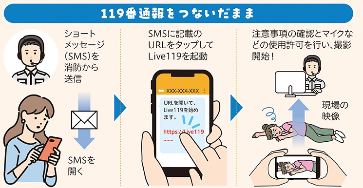 通報者がスマートフォンから現場の映像を送信して状況を伝えることができるシステム「Live119」を運用しています。
