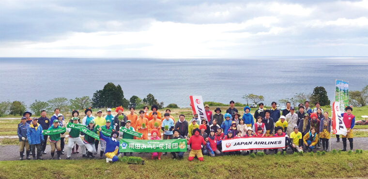 SDGsへの取組、ボランティア活動、社員研修などの一環として、棚田保全活動に参加してもらえる企業や団体を「棚田みらい応援団」として募集し、棚田地域の営農活動・地域活性化を支援しています。この活動は、おいしい米作りだけでなく、美しい景観を守り、森林の環境保全活動に貢献し、地域の暮らしを災害から守ることに役立っています。