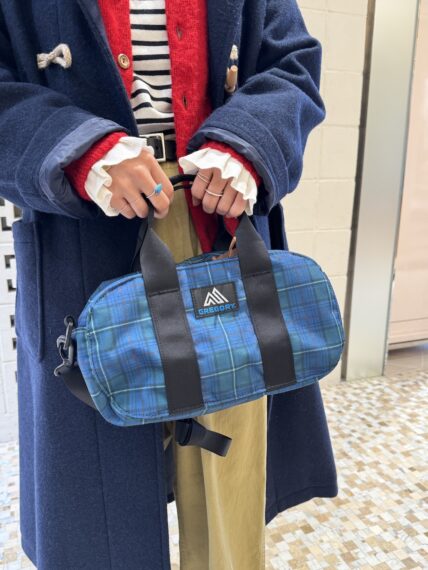 ダッフルコートはしっかりウールが入っていて、とっても暖かく、されどとにかく軽くて、重ね着も楽しめます。今回は赤ニットやチェックのバッグで季節感をプラス。頑張りすぎないクリスマスらしい冬コーデです。