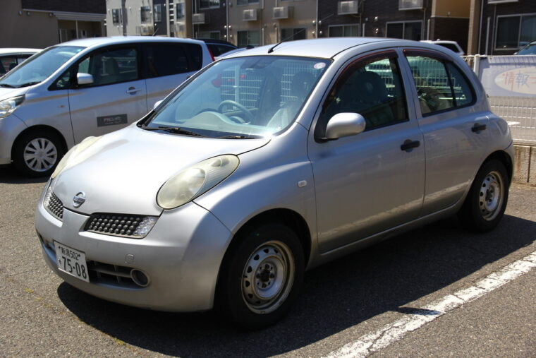 今回の車両は2002年式のコンパクトカー(日産マーチ)。20年以上前の車で、走行距離は20万キロを超えています。