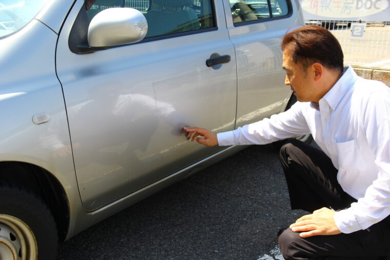 事前に車両と年式だけで、おおよその査定金額は出るらしいのですが、なにせキズも多く、雨漏りしていることもあるので、きちんと実車を見てもらいました。
