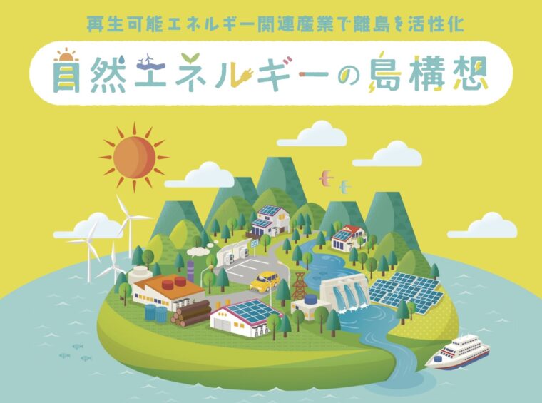 「自然エネルギーの島構想」とは、佐渡島・粟島において、再生可能エネルギーの導入拡大により、エネルギー自給率を高めるとともに、地域経済の活性化や防災力の向上、そして豊かな自然環境の維持を図ることで、持続可能な循環型社会の実現を目指すものです。