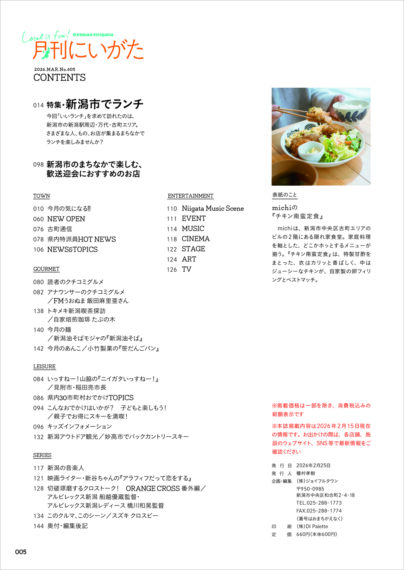 巻頭特集『新潟市でランチ』