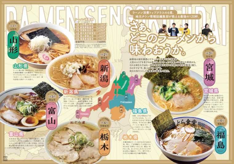 本誌『月刊にいがた』を含む全国のタウン誌で組織する「タウン情報全国ネットワーク」加盟6社(山形・新潟・宮城・栃木・福島・富山)の共同制作により、地域の食文化発信と広域観光の振興を目的とした合同別冊『ラーメン戦国時代 — タウン誌編集部が選んだ最強の120杯』が発売されました!