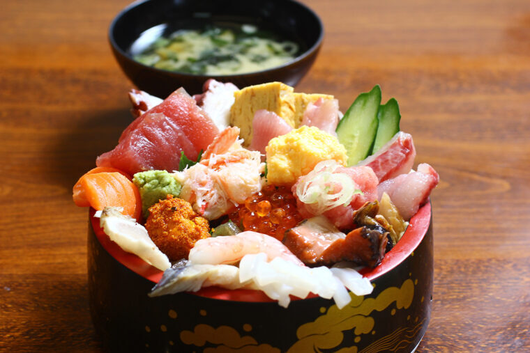 新鮮な魚介は佐渡の何よりの自慢です! 島内の飲食店では季節ごとの地魚をふんだんに盛り込んだ海鮮丼を味わえます。そして、「ブリカツ」をご存じですか? 佐渡産の天然ブリを佐渡市認証米の米粉で揚げたもので、外はカリッ、中はとってもジューシー。あご(トビウオ)だしを使った特製の醤油ダレにくぐらせたブリカツは、佐渡産のコシヒカリと相性抜群なのです!