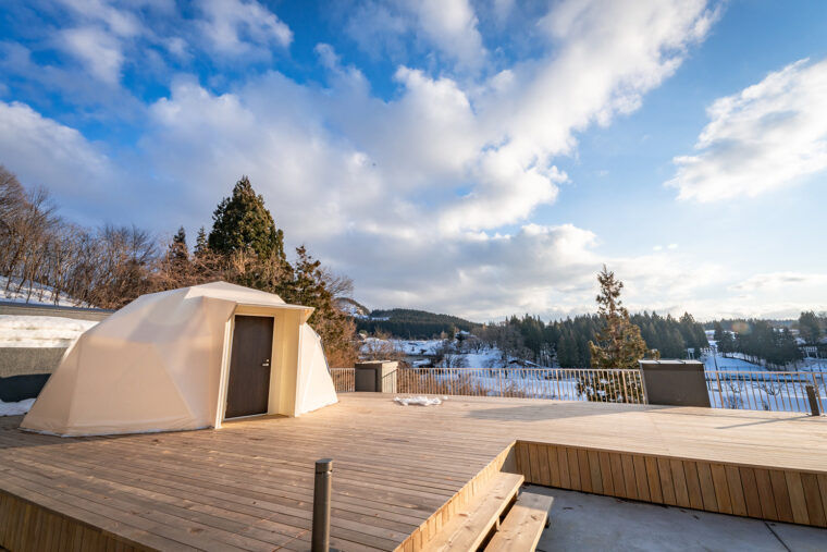 緩やかな丘と山々に囲まれた美しい高原に佇むロイヤル胎内パークホテルに、この春、2棟のドーム型グランピング施設がオープンしました。雰囲気の異なるMORIとSORAの2棟のテントには、季節を問わず大人が快適に過ごせる設備が充実しています!