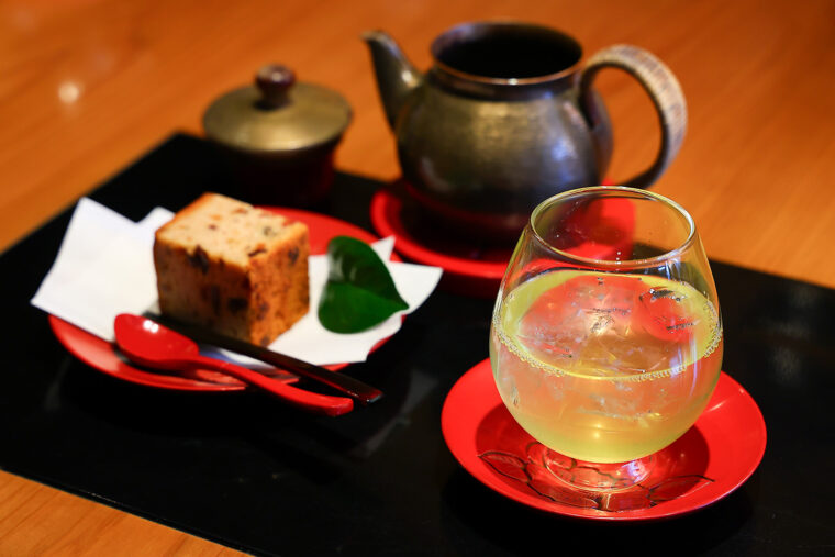 茶寮カネエイは、村上の老舗茶舗・冨士美園の店舗奥にある日本茶専門カフェ。