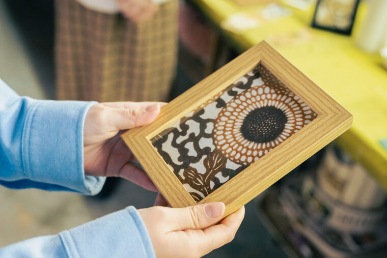体験料はハンカチ1枚2,500円(3枚から受付)、型染フレーム1枚2,000円です。