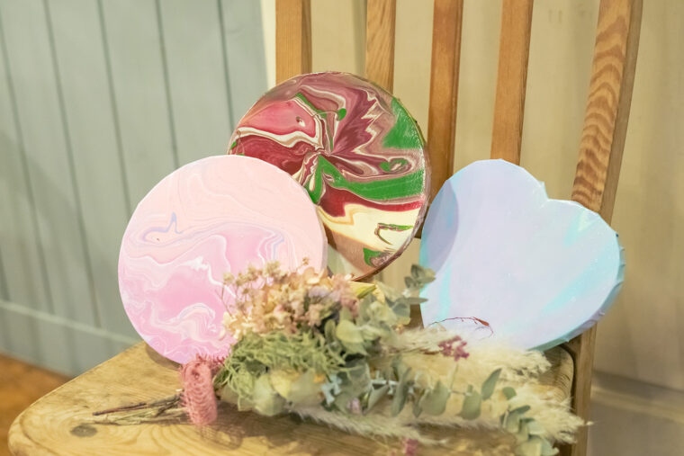 インクを垂らして偶然生まれる模様を楽しむ『フルイドアート』も予約不要で体験が可能です。(ランチタイムを除く営業時間内のみ)