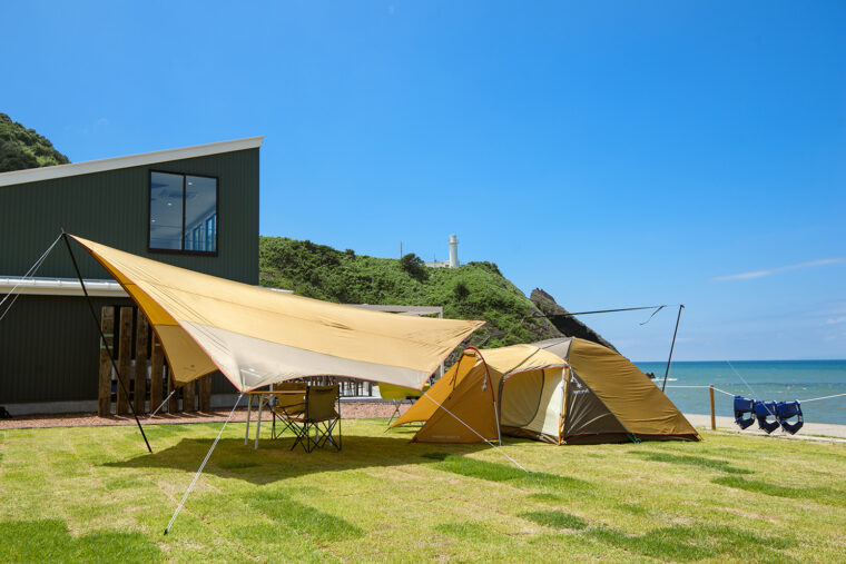 燦燦BASEは、角田浜海水浴場にあるキャンプサイトとカフェを併設した施設です。